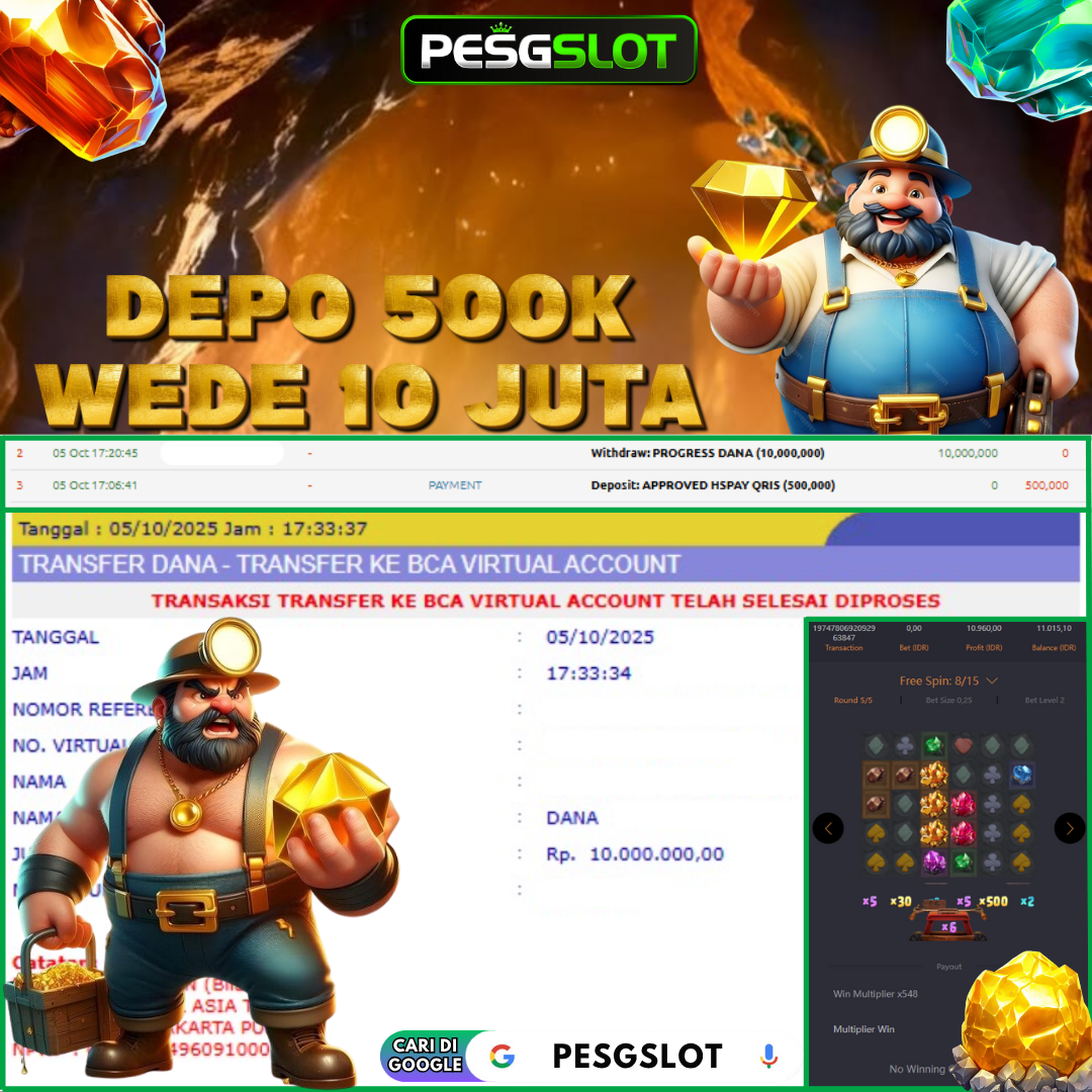 Bukti Kemenangan 5 Oktober 2025 Di PESGSLOT WD 3 JUTA 200K